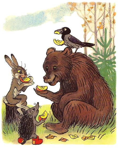 Четвертый кусочек Ёжик Медведю в лапу положил: