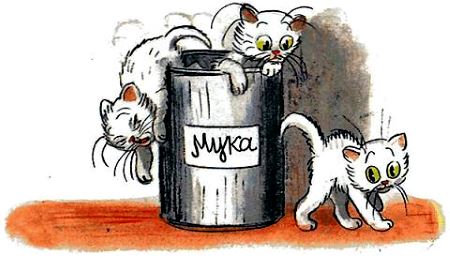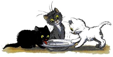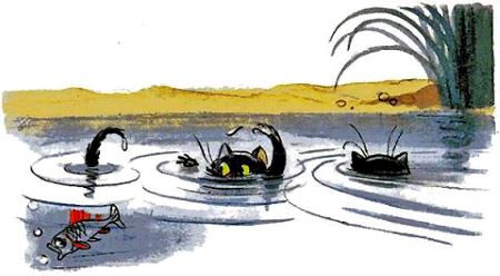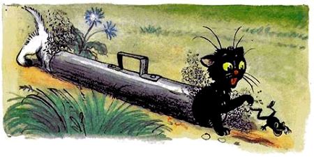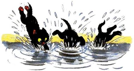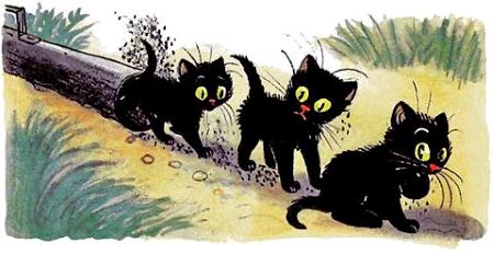 Лягушка ускакала, а из трубы вылезли три чёрных котёнка.