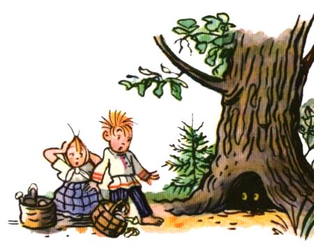 Испугались дети, кинулись бежать, даже корзинки бросили.