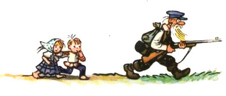Бегут они по лесу, кричат, а навстречу им лесник.