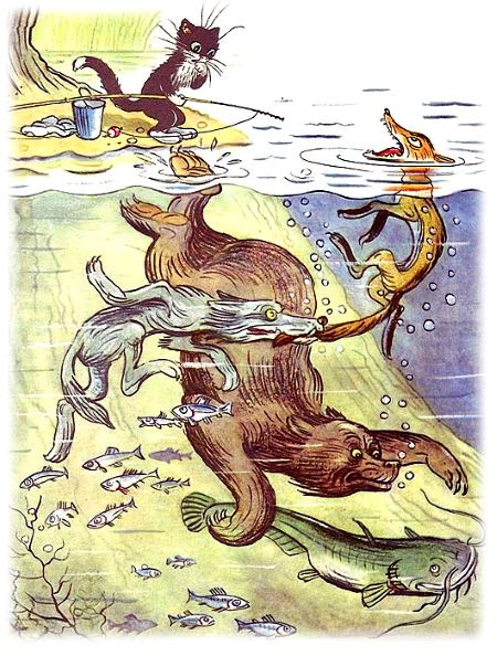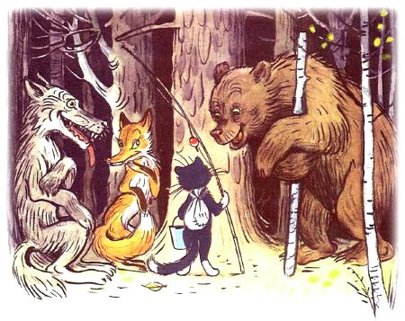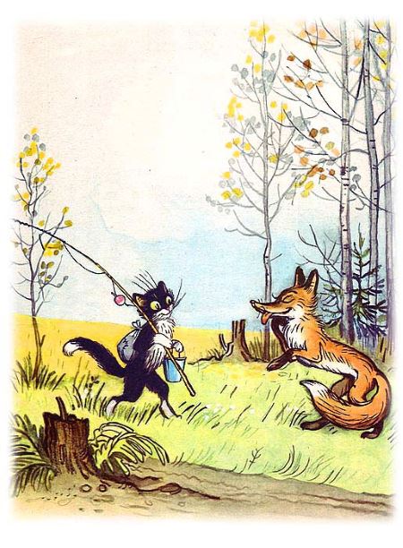 Пошёл как-то Кот на речку рыбу ловить и у самой опушки Лису встретил.